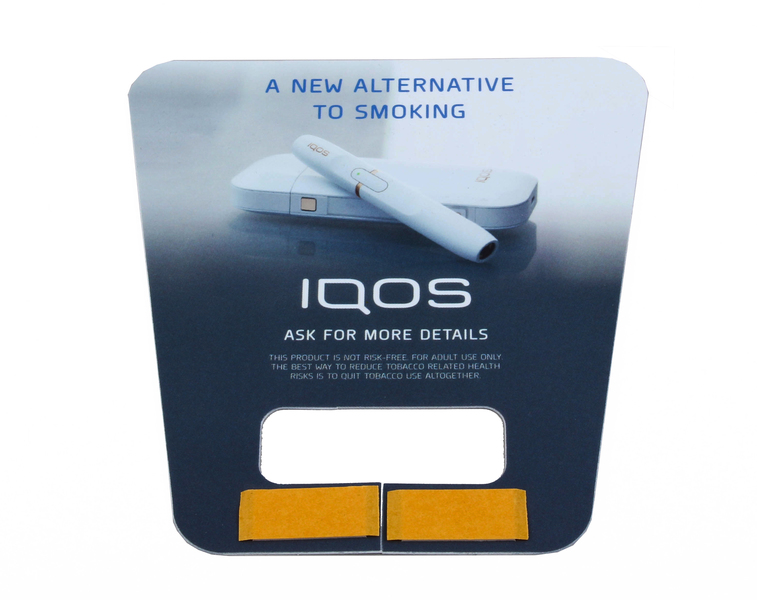 Made in white 750mym p/prop. Litho printed with a 4 colour process + seal. with 2x self adhesive pads to the front face.